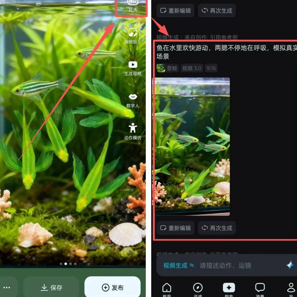 手机怎么赚钱最简单最有效:用手机AI生成观赏鱼带货视频