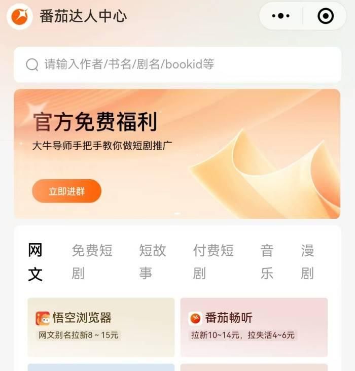 番茄达人中心是字节官方推出的拉新推广一手接单平台。