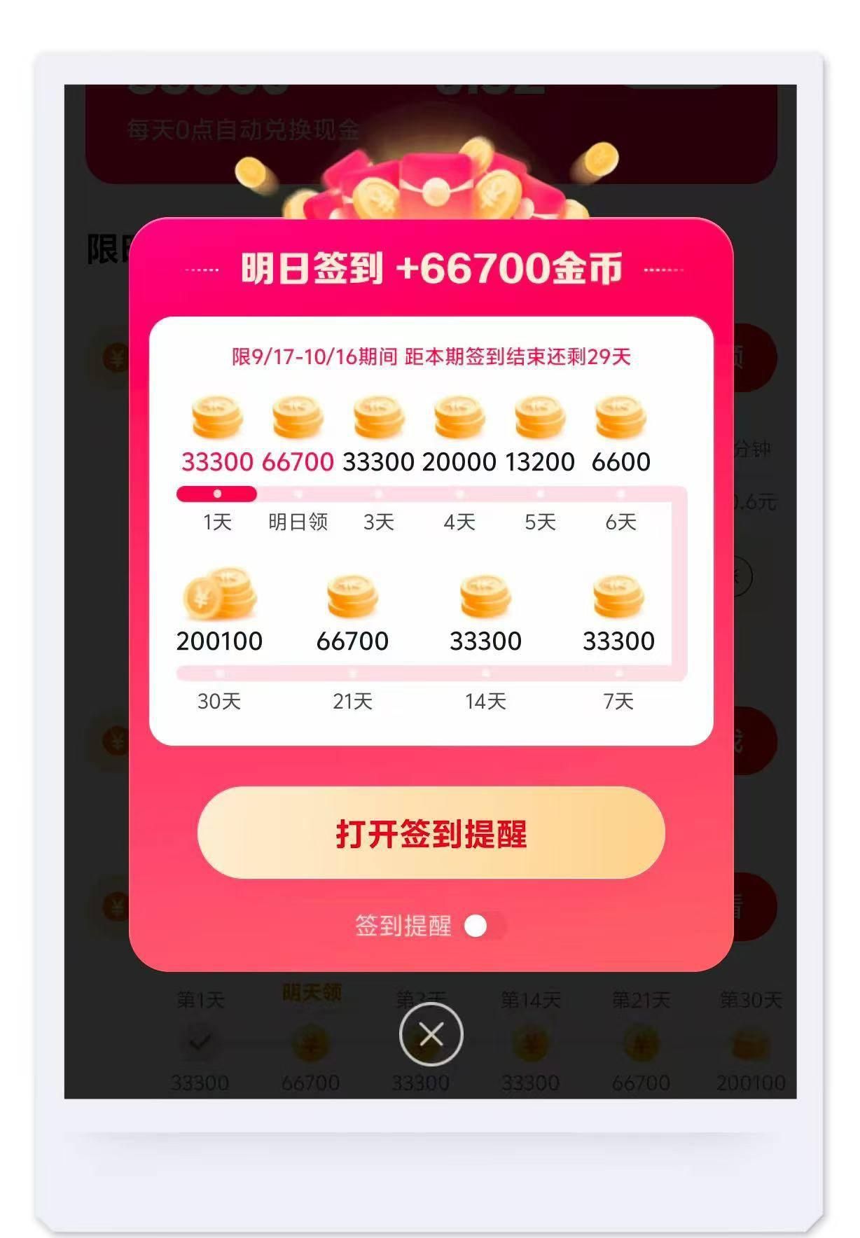 你看人家,光是签到就能拿3.3元、6.6元甚至20元!要是能连续签到1个月,累计能拿60万金币,也就是整整60元收益!