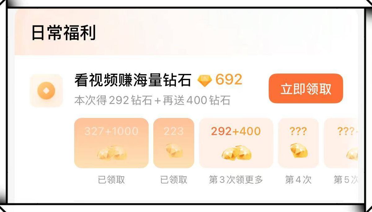 :该任务的养成要点是领取全部钻石,切勿留存结余,一旦有结余,次日钻石收益便会下降。