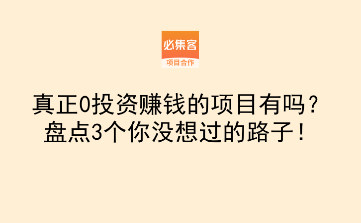 真正0投资赚钱的项目有吗?盘点3个你没想过的路子!