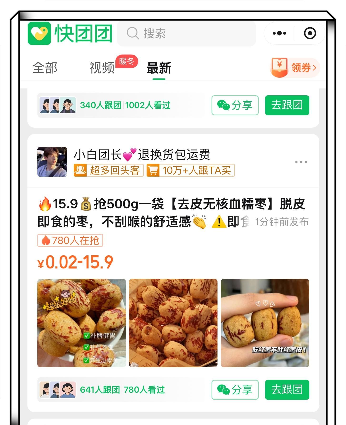 先申请成为快团团团长就可以,初期完全不用自己找货源,可以先从“帮卖”起步:找销量高、口碑好的成熟团长,一键帮卖他们的商品,你只需要负责分享推广,就能赚取分销差价,完全零风险零库存。