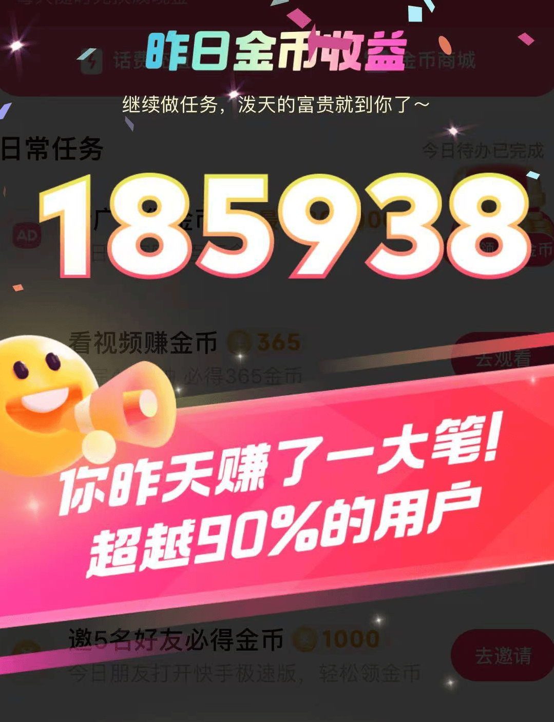 快手极速版同样是一款热门的赚钱APP,它的赚钱模式和抖音极速版类似,也是由做任务赚金币和拉新推广两部分构成。
