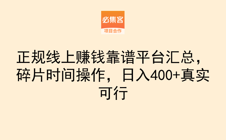 正规线上赚钱靠谱平台汇总,日入400+真实可行