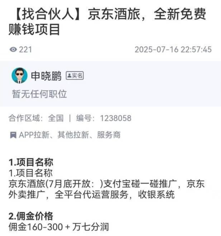 正如上文所说,京东酒店商家入驻必须通过推广员获取邀请码,这恰恰是普通人可以抓住的赚钱风口。