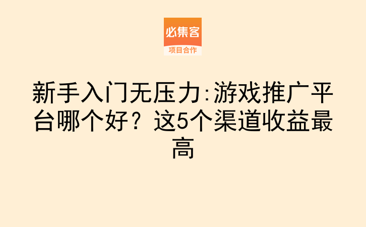 新手入门无压力:游戏推广平台哪个好?这5个渠道收益最高