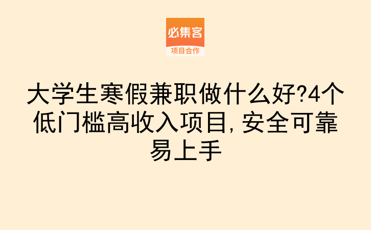 寒假空档期,不少大学生想利用这段时间赚点零花钱,却苦于找不到合适的方向,大学生寒假兼职做什么好?其实不用纠结,市面上有不少低门槛、易上手且兼顾安全与收入的项目,比如必集客平台上就汇聚了不少这类机会,能帮你在赚钱的同时获得成长。
