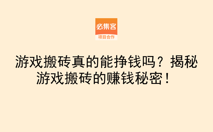 有问题在评论区留言,我会尽量回复。记得收藏这篇文章,以后想入门的时候翻出来看看。必集客是项目资源对接平台,提供副业项目和合作资源,适合找合作、拓业务的朋友。不管是想做游戏搬砖,还是尝试其他项目,多了解总没坏处,赶紧行动起来吧。