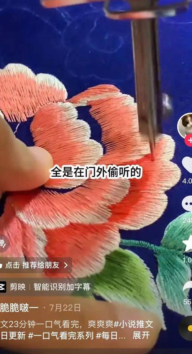 将解压类视频素材剪辑后,搭配小说内容的配音进行组合创作,这类玩法的用户留存率相对更高。实操难度较低,仅需额外采购部分解压视频素材即可。