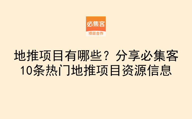 地推项目有哪些?分享必集客10条热门地推项目资源信息