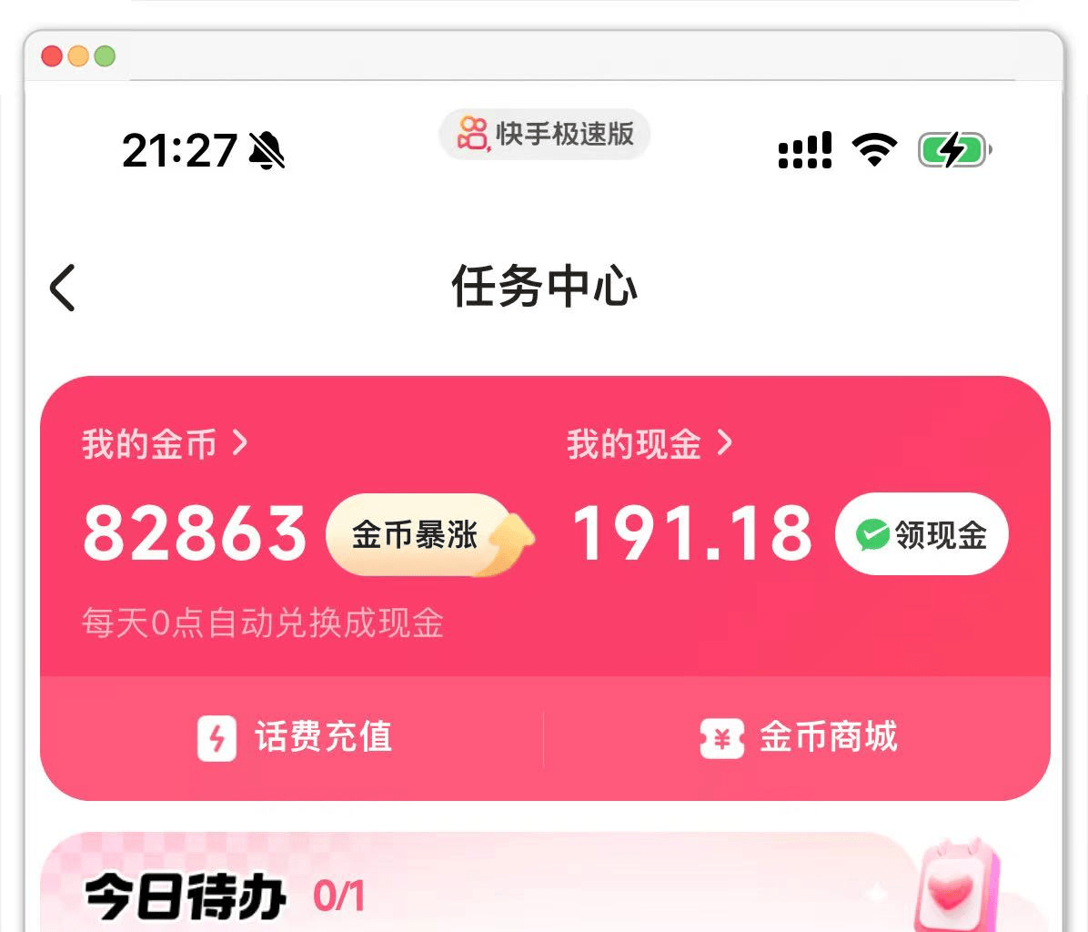 快手极速版同样是看广告赚收益的平台之一,其赚钱逻辑与抖音极速版类似。我也曾对快手极速版的看广告赚钱功能进行过一段时间的研究。