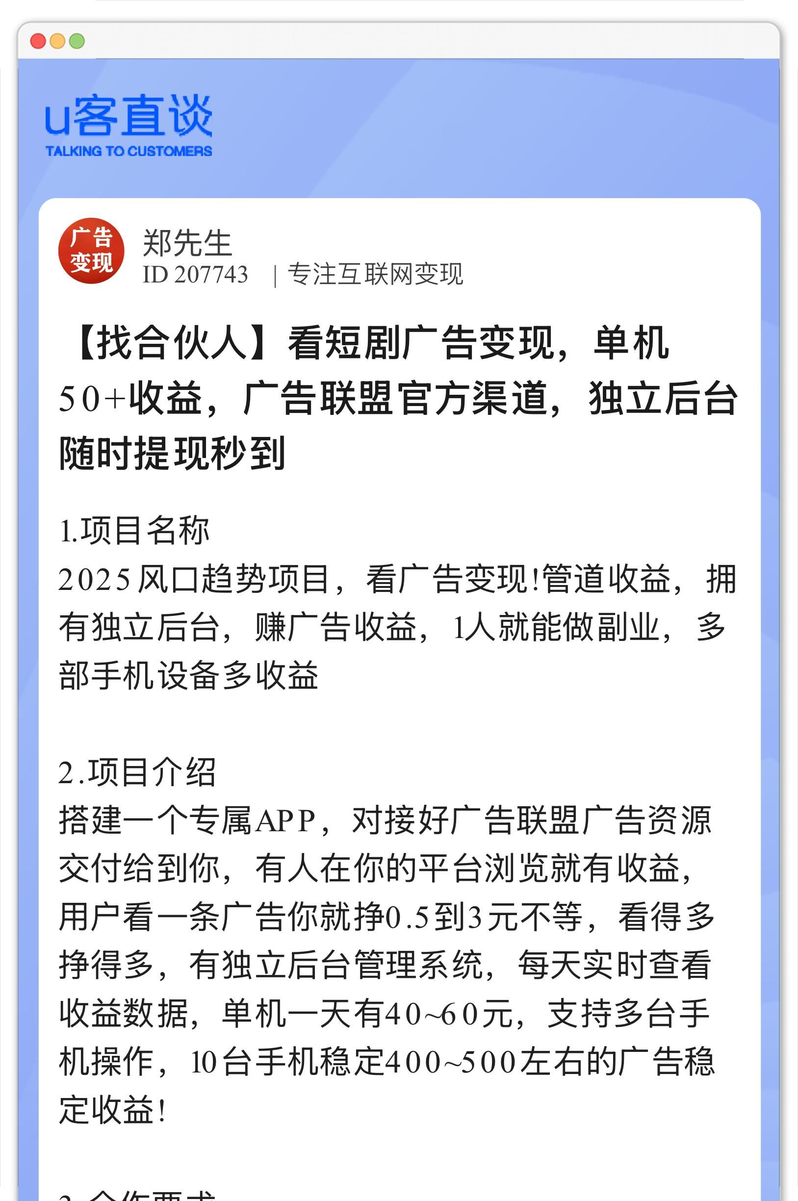 在看广告赚收益的平台中,还有一类是“广告联盟”模式。简单来说,就是自行搭建看广告赚钱的平台、网站或小程序,这类模式的收益大头由自己掌控,因此对于希望通过看广告赚取更多收益的人来说,广告联盟是个不错的选择。
