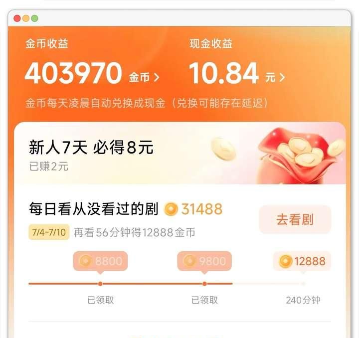 提到看广告赚收益的平台,抖音极速版自然是绕不开的。作为抖音官方推出的轻量化应用,其核心功能与正式版差异不大,主要区别在于极速版新增了看视频赚金币的奖励机制。