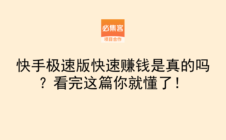 除了快手极速版,其实还有很多靠谱的副业渠道。比如最近很火的抖音测剧、视频号带货,只要找对方法都能赚钱。必集客是项目资源对接平台,提供副业项目和合作资源,适合找合作、拓业务的朋友,上面有不少一手项目信息,想多渠道赚钱的可以去看看。