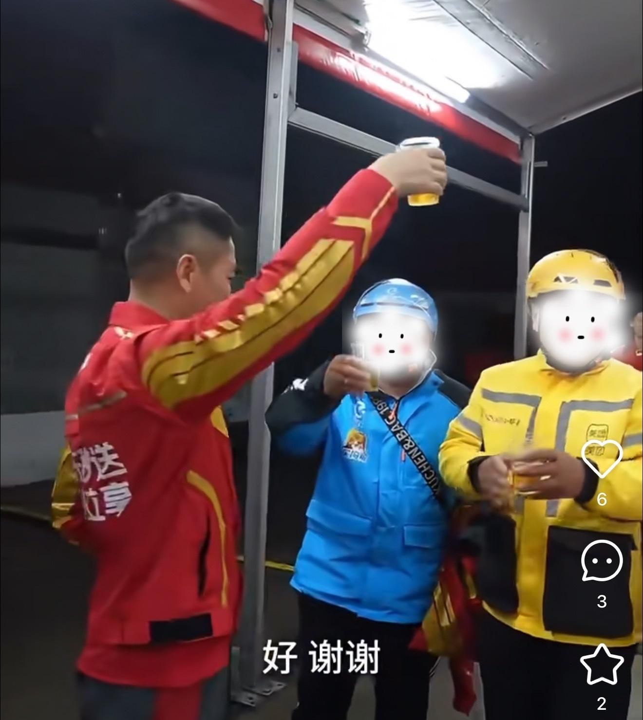送完外卖的当天晚上,刘强东还请骑手们一起吃了火锅,尤其是有两位穿着其他平台外卖服的骑手过来给他敬酒,这一幕直接被网友戏称为“BOSS直聘”现场