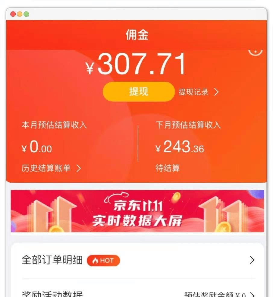 平台上的佣金比例清晰透明,结算十分稳定,可以先提现到京东钱包,再自行提取到个人银行卡中。