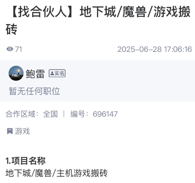 个人搬砖通常是选择一款市面上表现优异的端游,通过在游戏内执行重复性任务获取金币、材料等资源,再转手出售实现变现。