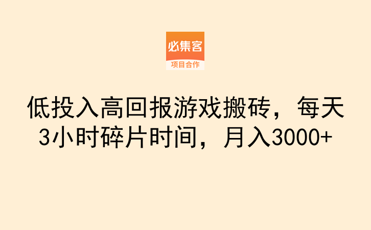 低投入高回报游戏搬砖,每天3小时碎片时间,月入3000+