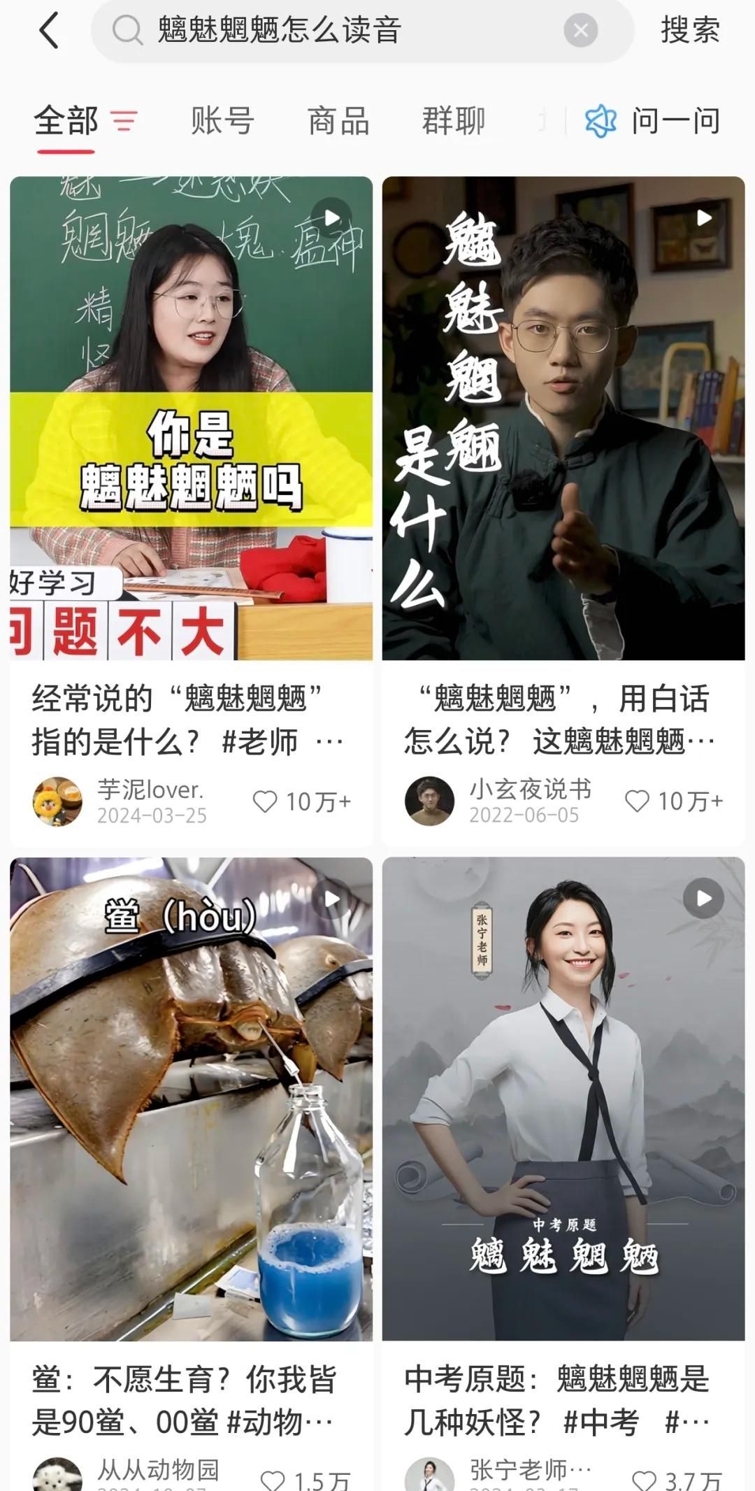 前几天刷新闻的时候,我刷到了几个生僻字“魑隗魍魉”,一时不知道怎么读,于是就去抖音、小红书搜了相关内容,没想到这个题材居然这么火,已经有很多账号在做相关内容了。