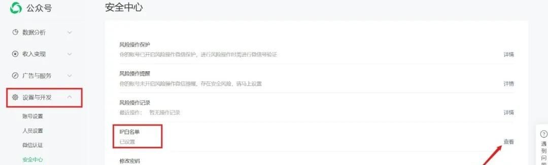 打开公众号后台,依次点击【设置与开发】-【安全中心】
