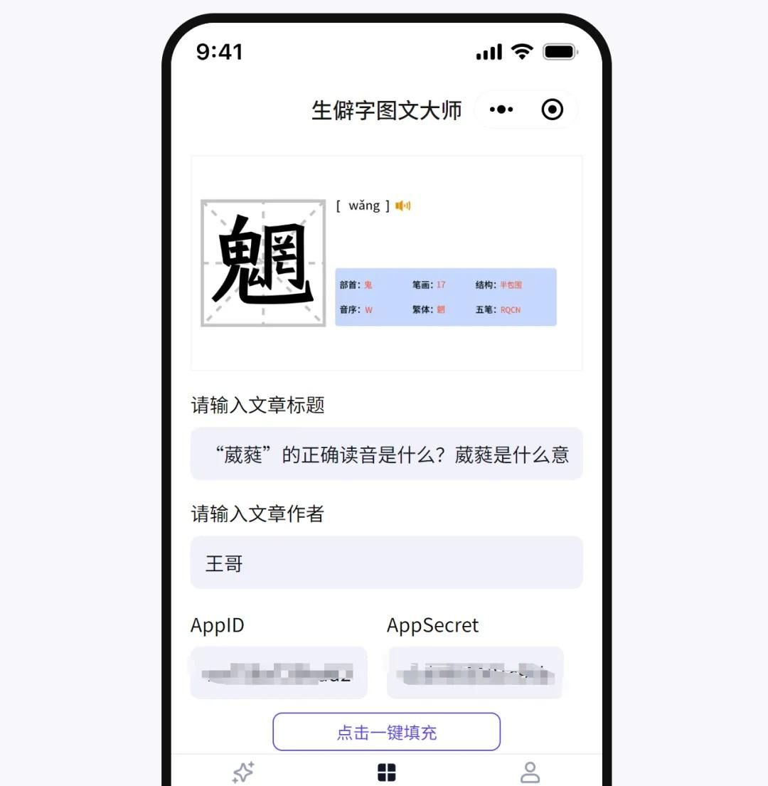 输入文章选题,输入文章作者,一键填充公众号参数。