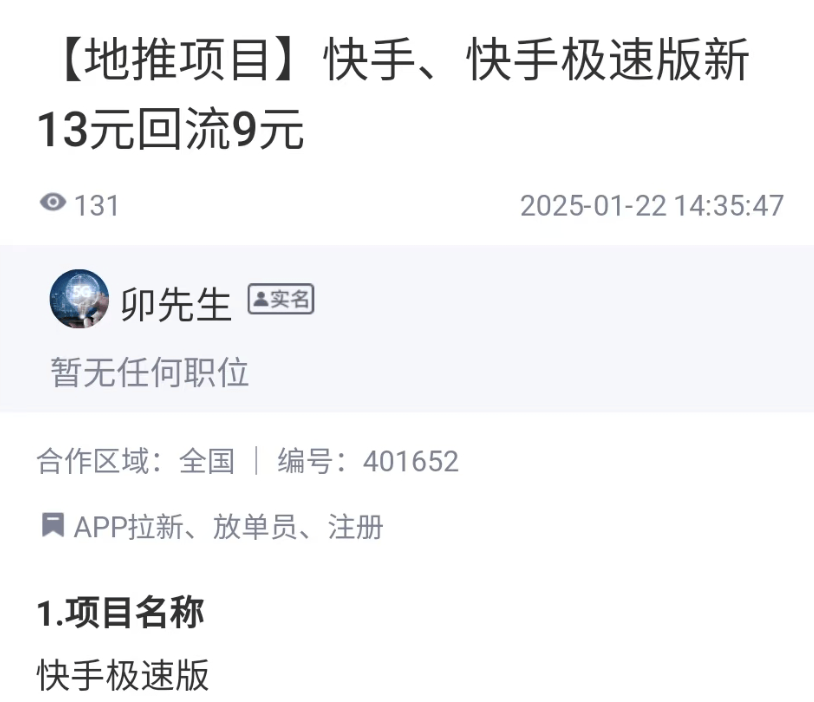 除此之外,成为正规的平台推广员收益明显更高。快手极速版拉新项目在推广行业内热度一直很高,通过必集客等接单平台可知,新用户拉新单价为13元,老用户回流拉新单价为9元,均高于7元。
