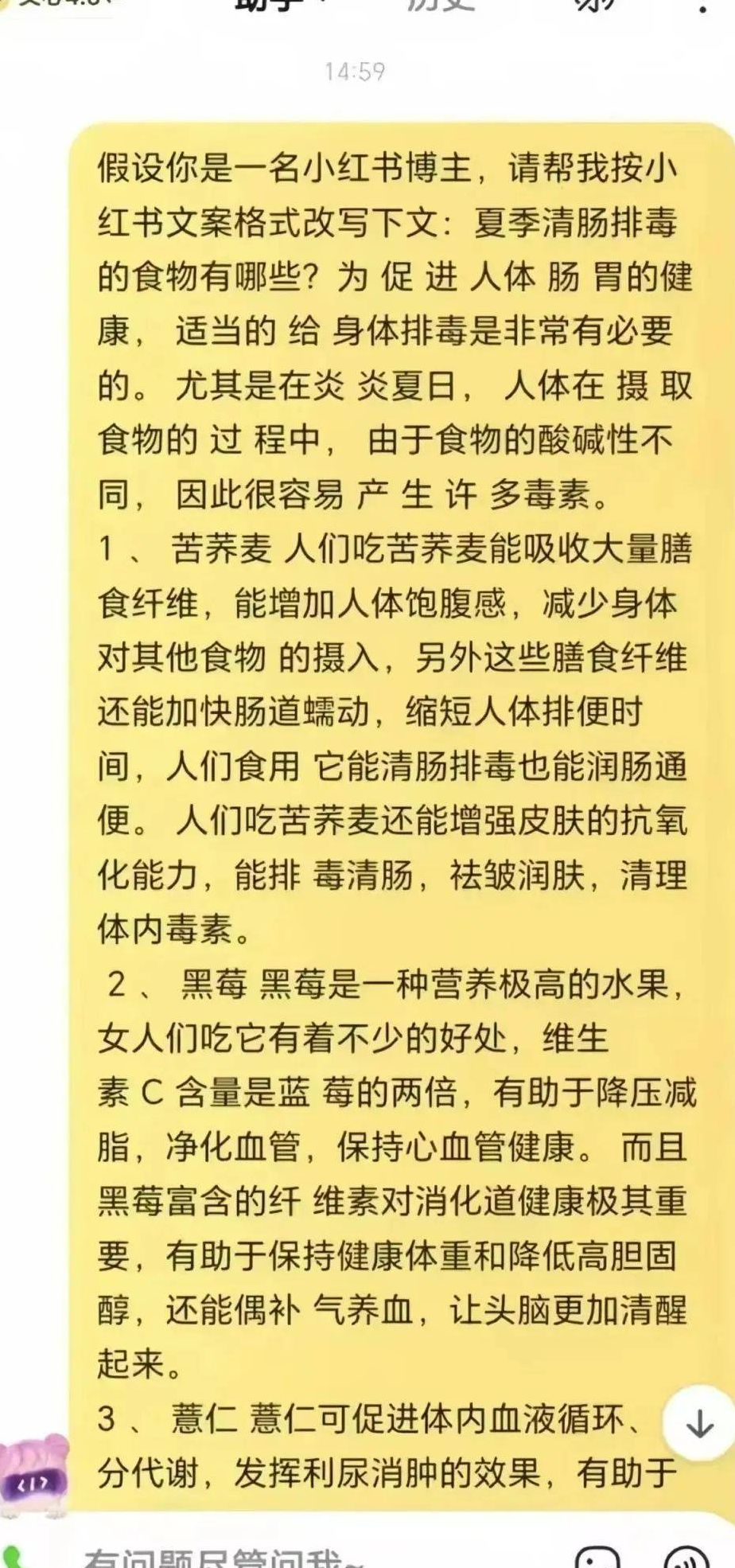 从买到的养生资料里挑出合适的内容,发给AI就能生成改写后的文案。