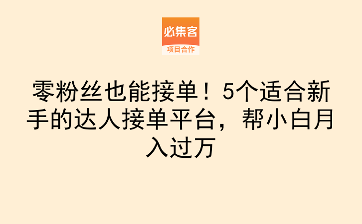 零粉丝也能接单!5个适合新手的达人接单平台,帮小白月入过万