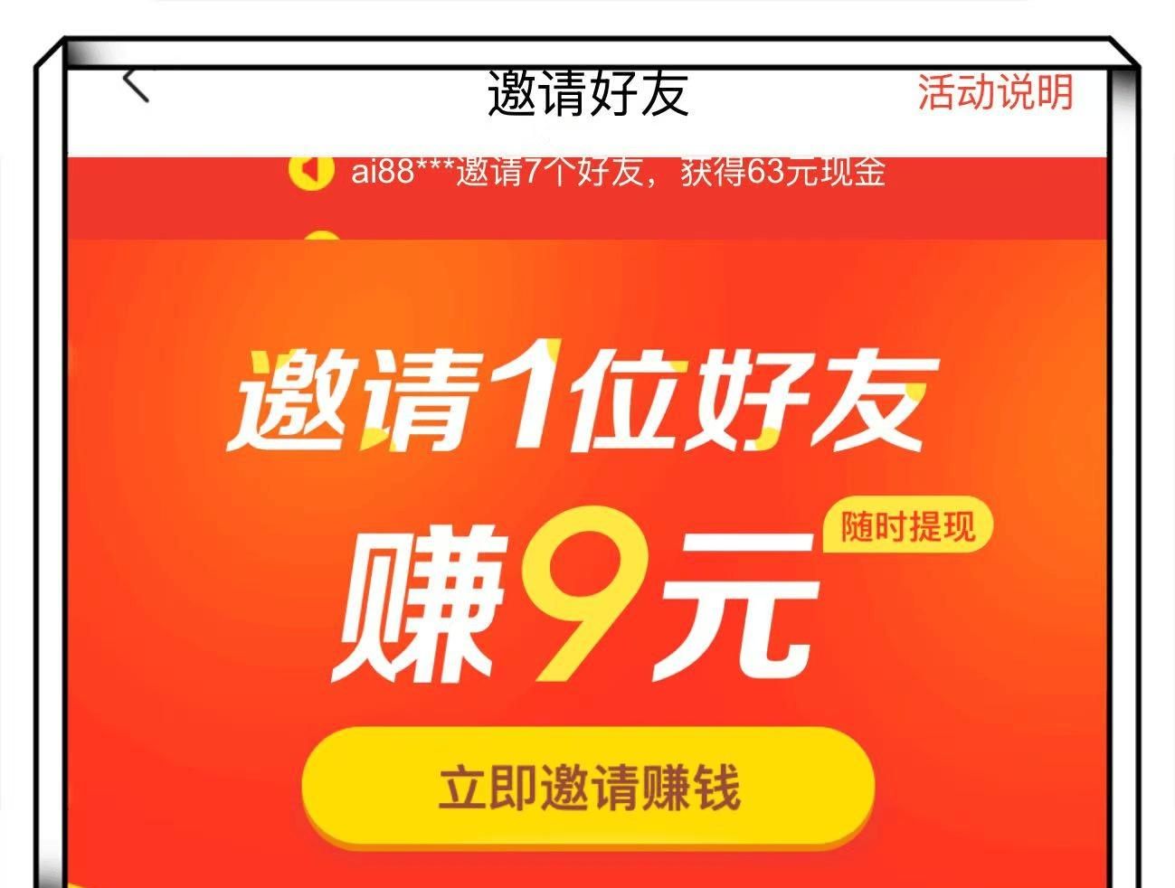 其中官方版本,直接在今日头条极速版的任务页展示,邀请一个新用户,可得9块钱的收益。