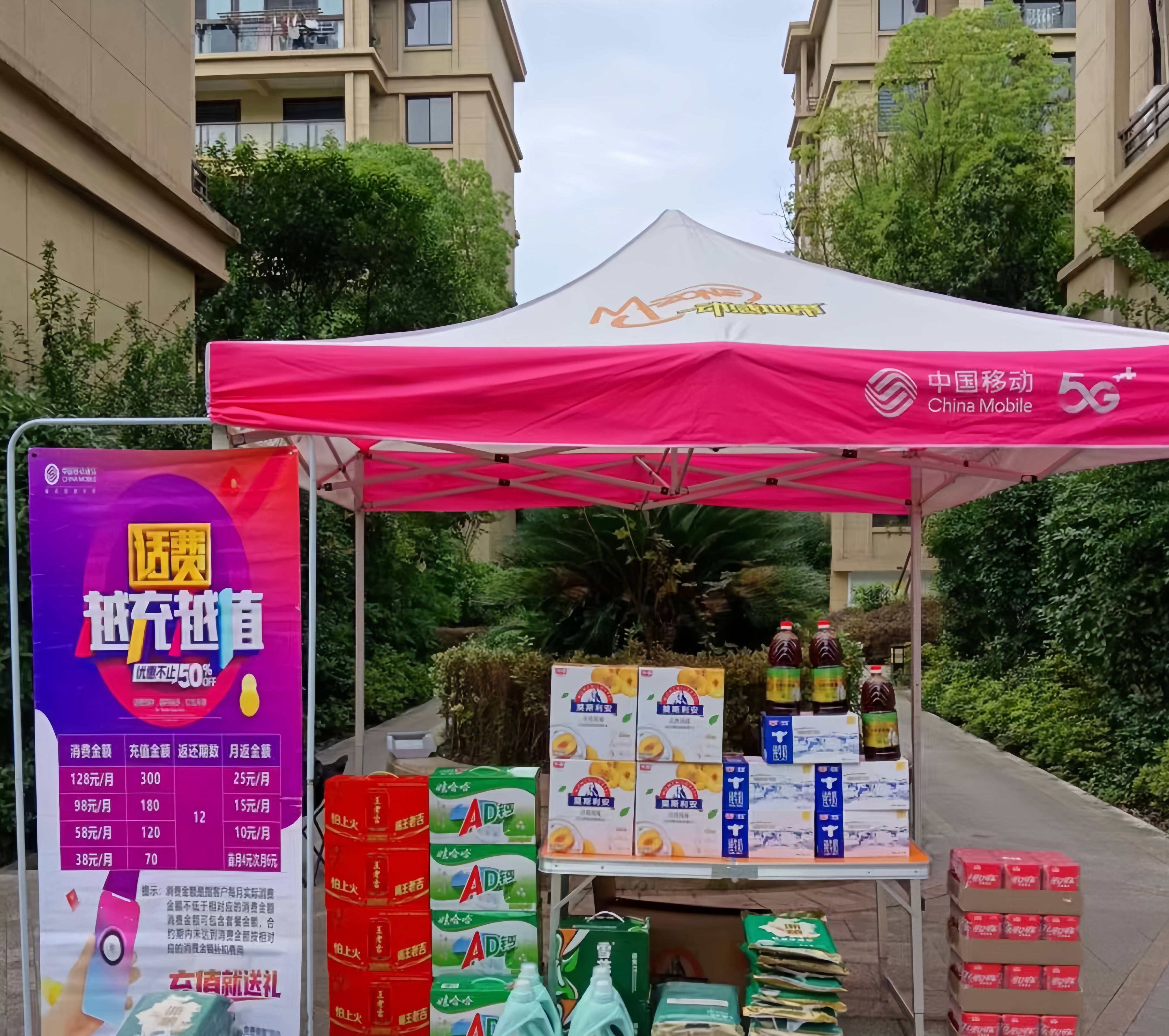 还有一些则是定点摆摊推广,一天或连续多天固定在同一个场所,这种形式多见于生活服务类APP,推广地点常选在居民小区。