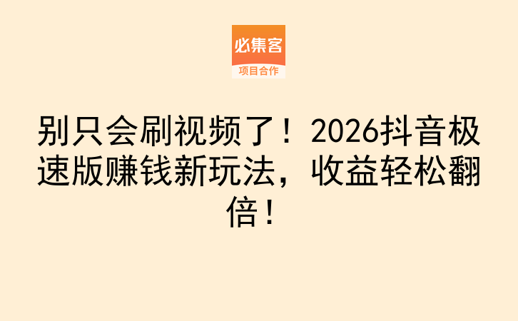 别只会刷视频了!2026抖音极速版赚钱新玩法,收益轻松翻倍!