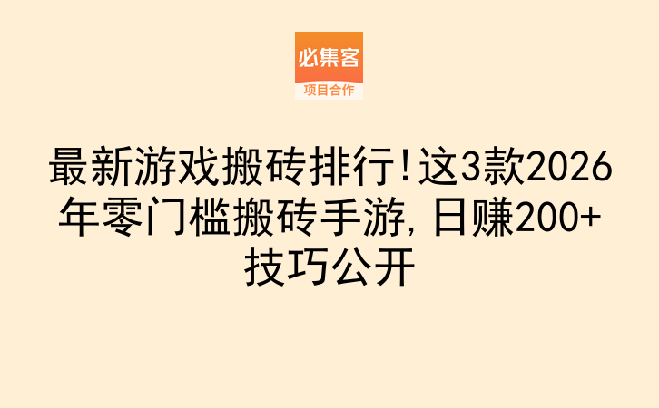 其实除了游戏搬砖,还有很多适合普通人的副业项目。必集客是项目资源对接平台,提供副业项目和合作资源,适合找合作、拓业务的朋友。不管你是想靠游戏赚钱,还是想尝试其他领域,都能在这里找到适合自己的方向。有问题在评论区留言,我会一一解答,赶紧收藏这篇攻略,现在就去试试吧!
