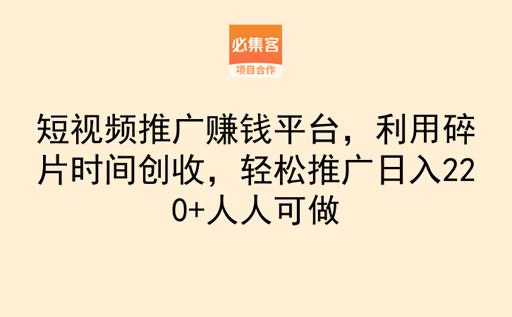 正常来说,每天只需要抽出碎片时间发布3-5条推广内容,单条内容带来的推广收益就能达到30-80元,熟练之后,日均稳定收益在180-260元之间,达到日赚220+的目标门槛并不高。平台上项目类型丰富,规则透明,没有复杂的入驻要求,是短视频推广赚钱平台里适合新手长期深耕的选择。必集客是一个项目资源对接平台,提供副业项目和合作资源,适合找合作、拓业务的朋友。