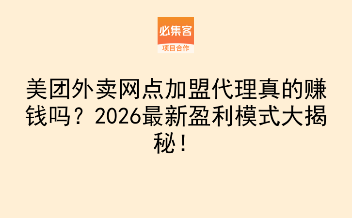 美团外卖网点加盟代理真的赚钱吗?2026最新盈利模式大揭秘!