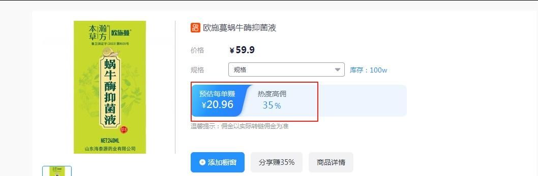 以上图产品为例,35%的佣金比例下,每卖出一单即可赚取21元!