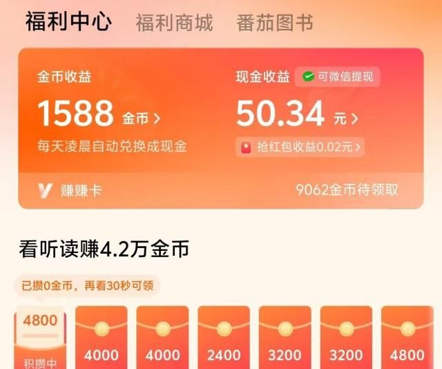 从前面提到的几款字节跳动旗下App不难看出,刷视频看广告赚钱已是其一大特色,而番茄小说作为“家族成员”自然也不例外。更方便的是,番茄小说支持看小说、听小说均获取金币收益,用户甚至可开启自动播放听书模式赚取金币。