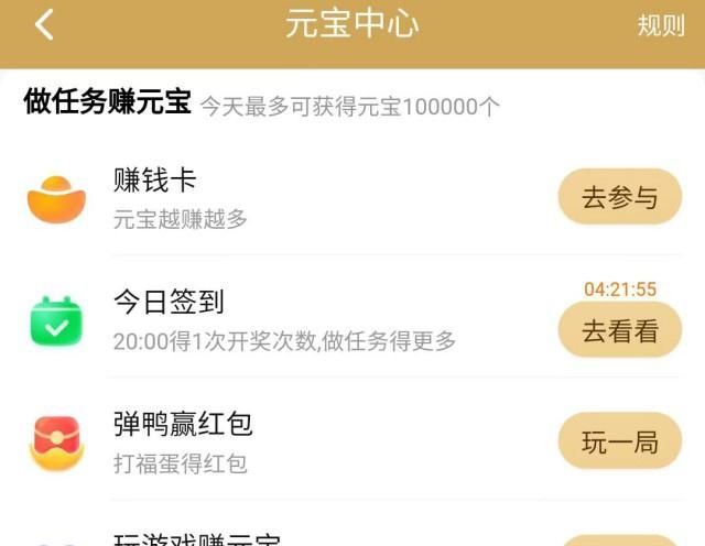 在抖音极速版的任务中心,用户可通过开宝箱看广告、签到、逛街、领饭补、邀请老用户回流等任务获取金币,金币支持自动或手动兑换为现金收益,兑换比例为10000:1,当现金收益达到提现门槛后,即可提现至个人账户。
