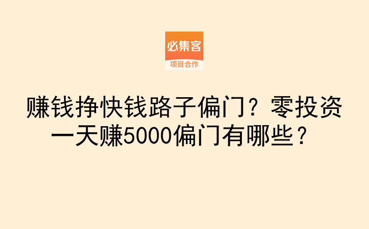 赚钱挣快钱路子偏门?零投资一天赚5000偏门有哪些?