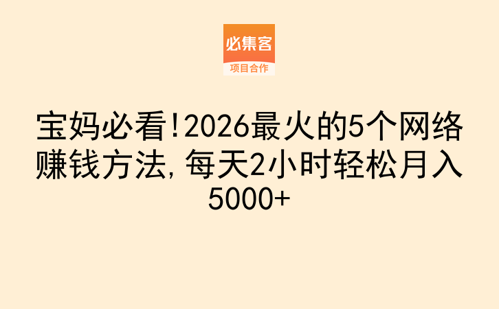 宝妈必看!2026最火的5个网络赚钱方法,每天2小时轻松月入5000+