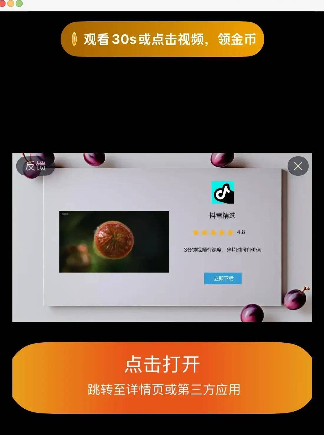 这类广告需要你点击跳转后再返回APP,才能成功领到金币奖励。