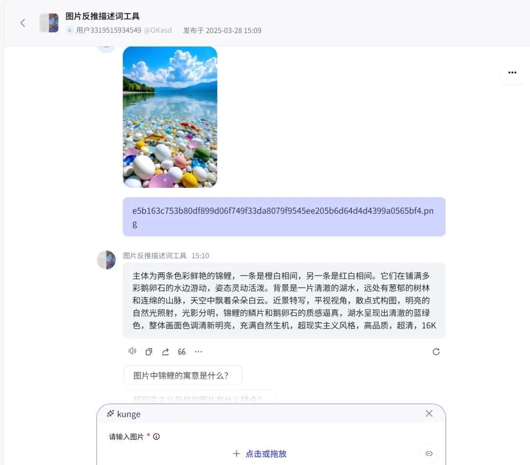 我们打开这款图片反推描述词工具,进入页面后上传下载好的对标视频截图,工具即可自动生成三段绘画提示词。