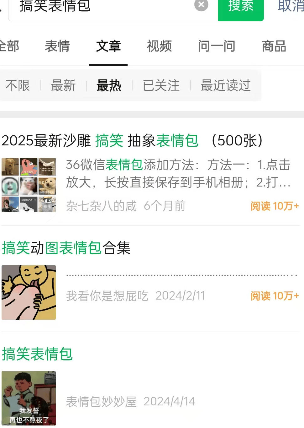 直接在搜索引擎或素材网站搜索“搞笑表情”,搜索时记得点击“按热度排序”,就能找到很多高热度的实用素材。
