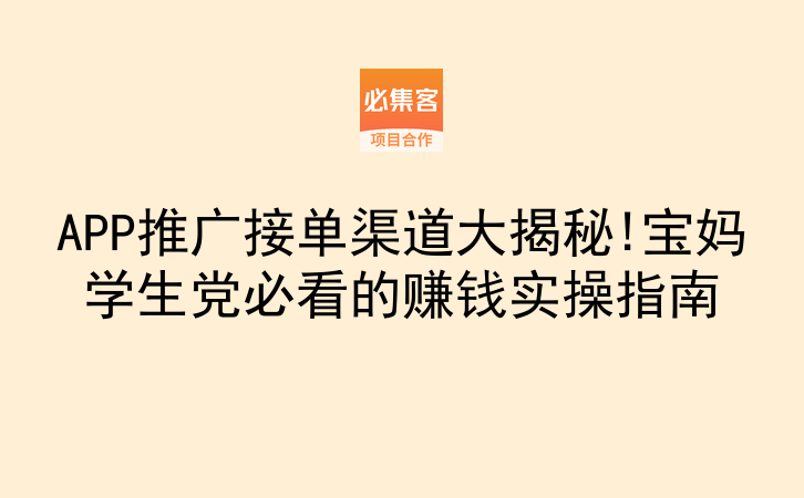 APP推广接单渠道大揭秘!宝妈学生党必看的赚钱实操指南