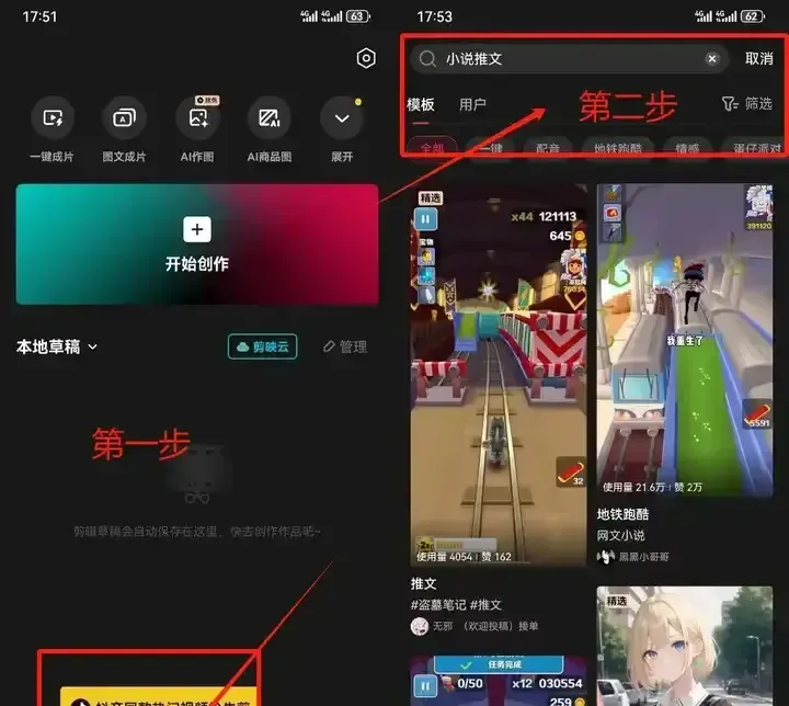 打开剪映的模板功能,搜索“小说推文”就能找到现成的模板,选一个合心意的就行。