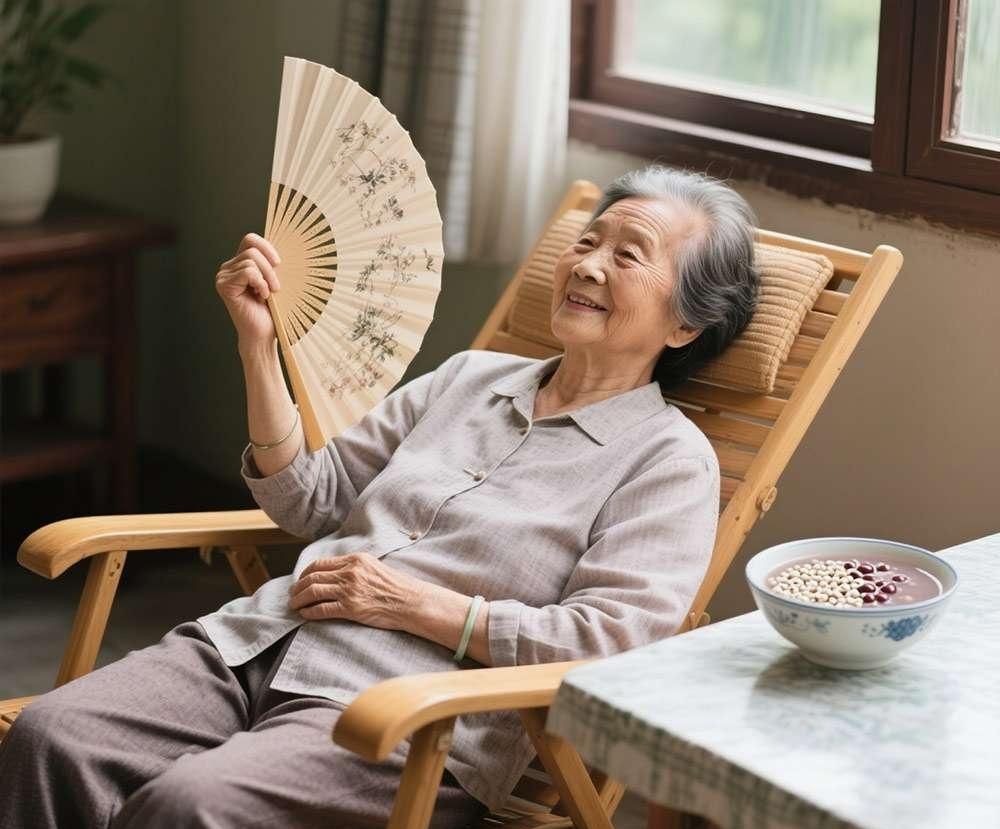 给大家举个例子,给豆包的图片指令可以这样写:“帮我生成一张图片,场景为:一个中国老奶奶坐在椅子上,手里拿着扇子,旁边放了一张桌子,桌子上放了一碗薏米红豆粥”,咱们来看豆包给我们生成的图片,是不是很逼真呢?