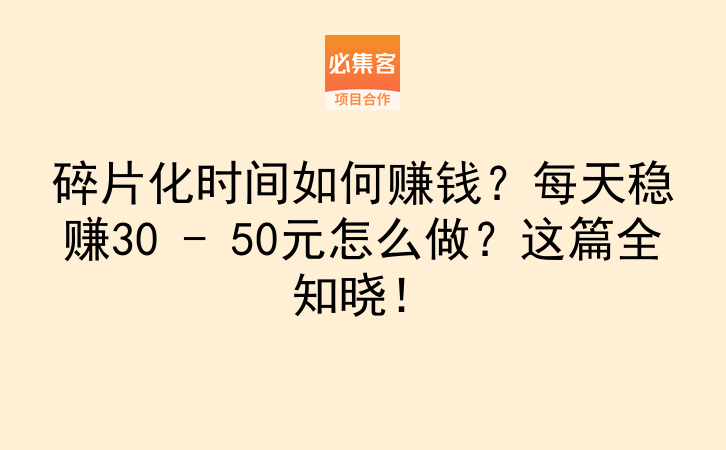 碎片化时间如何赚钱?每天稳赚30 - 50元怎么做?这篇全知晓!