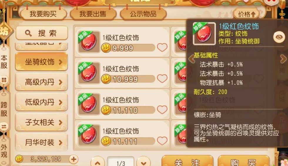但凡玩过梦幻西游手游的玩家都清楚,纹饰的属性可以直接提升宠物的战力数值,也正因为这一点,不少氪金大佬愿意为优质纹饰一掷千金。就拿1级蓝色纹饰举例,它能为宠物带来“物理伤害×3”的属性加成,给宠物佩戴两个的话,物理伤害能直接提升48点。这还只是1级纹饰的效果,要是换上两个3级纹饰,物理伤害的提升幅度能达到80点!红色纹饰的表现也毫不逊色,它可以有效提高宠物的暴击几率;而在黄色纹饰里,带有“伤害百分比增加”属性的品类,在交易市场里格外值钱。