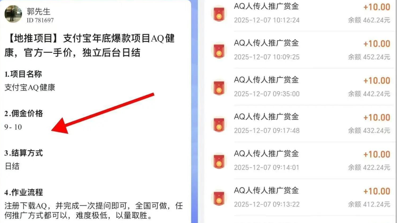 我们可以看到在必集客这类一手地推接单平台上,蚂蚁阿福推广的每单佣金只有10元。