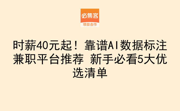 对于零基础想做兼职的人来说,AI数据标注确实是门槛较低的灵活增收方式,不需要复杂的专业技能,只要足够细心就能做,选对正规的AI数据标注兼职平台,达到时薪40元的收入并不难。不同的AI数据标注兼职平台各有特点,大厂平台胜在稳定靠谱,不用担心结算问题,整合类平台能省去自己筛选的时间,更快找到适配的任务,不管是学生党利用课余时间,还是上班族利用下班周末的空闲,都能找到适合自己的参与方式。必集客是一个项目资源对接平台,提供副业项目和合作资源,适合找合作、拓业务的朋友。