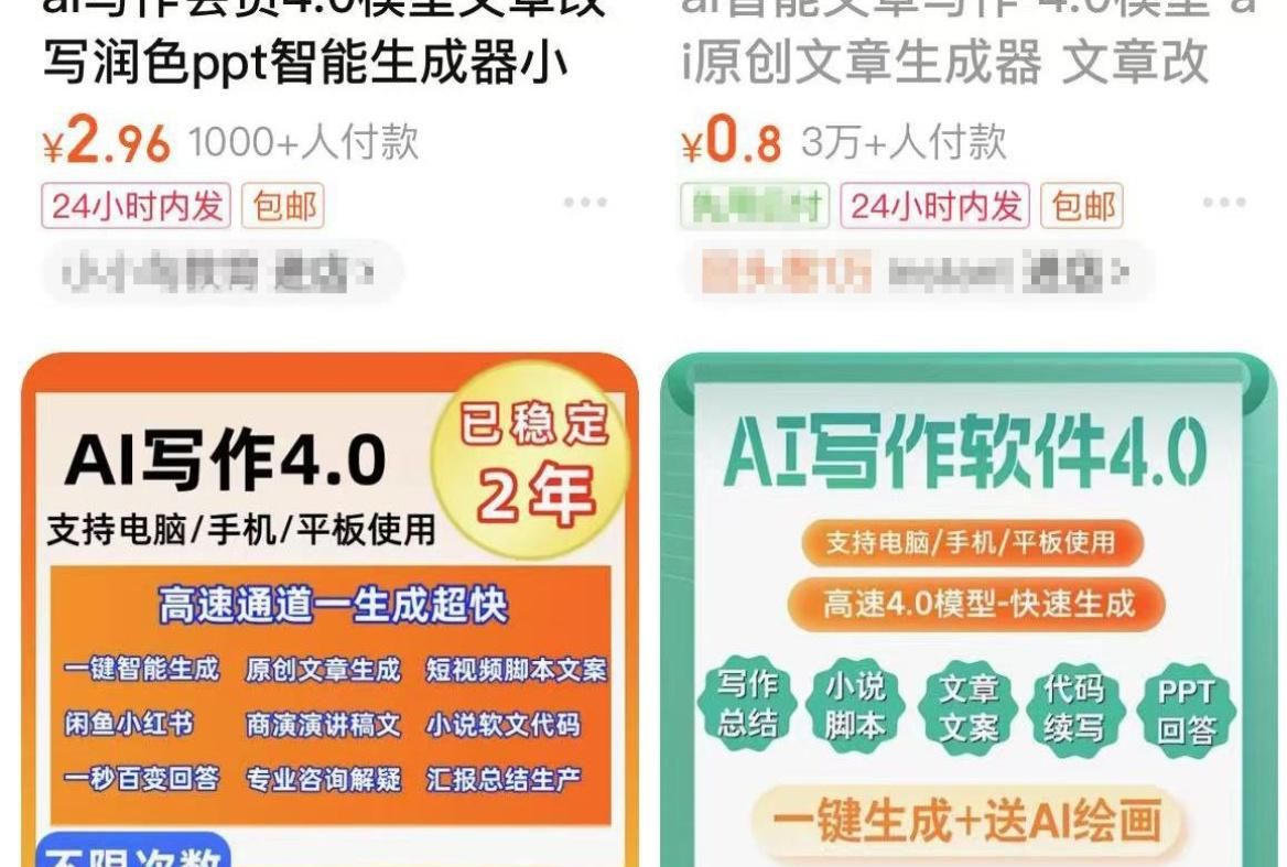 在淘宝平台,我们也能搜到大量提供AI写作、改稿的相关服务。